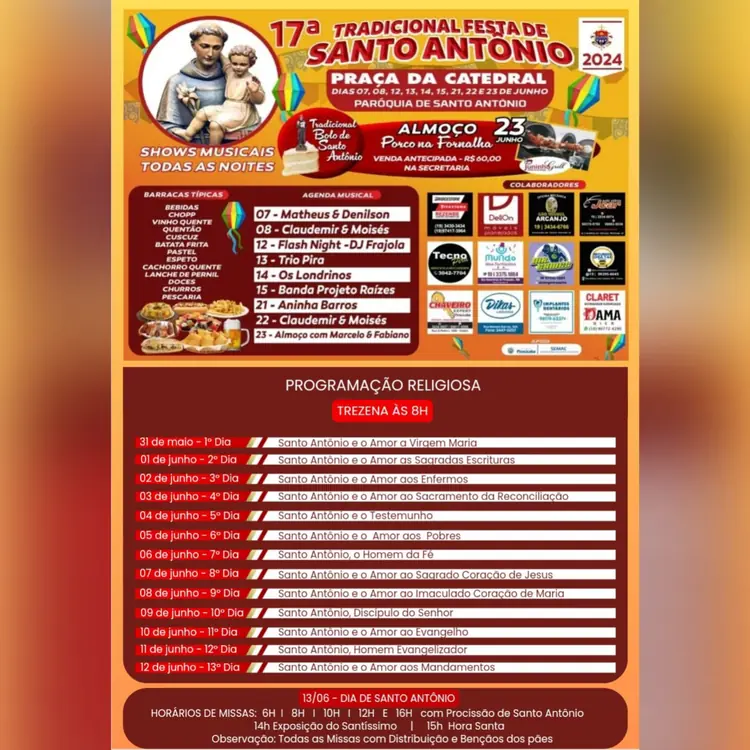 Programação da 17ª Tradicional Festa de Santo Antônio