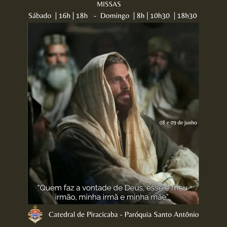 Missas 08 e 09 de junho na Catedral e Capela Aparecida